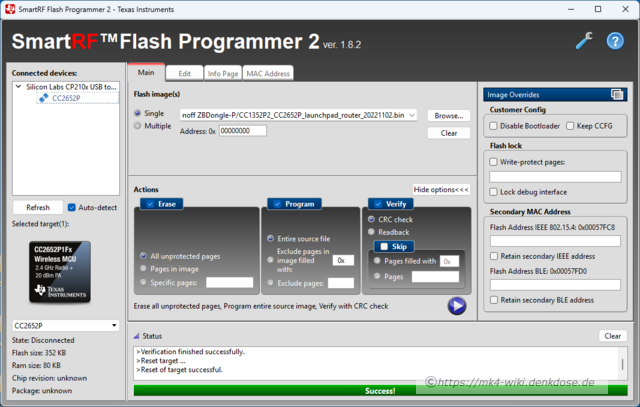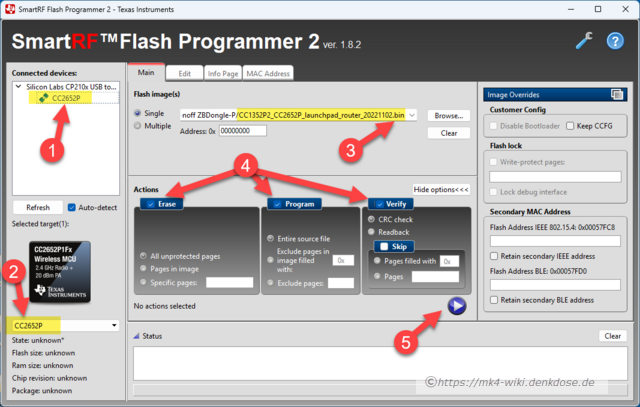 - Den Flash-Programmer „SmartRF Flash-Programmer 2“ von der Texas Instruments Website herunterladen und installieren