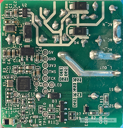 - Mikrocontroller: EFR32MG21, genauer gesagt EFR32MG21A020F768IM32 (SMD Marking „MG21 / A02011 / B01MBZ / 2038“)