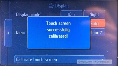 Im normalen Betriebsmodus ruft man die Kalibration über MENU ⇒ Anzeige ⇒ „Touchscreen kalibrieren“ auf.