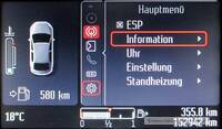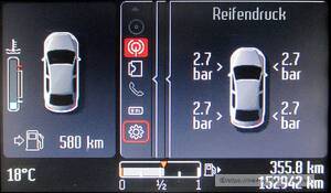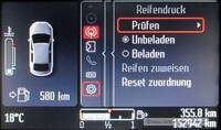 IPC-Menü ⇒ „Einstellungen“ ⇒ „Information“ ⇒ „Reifendruck“