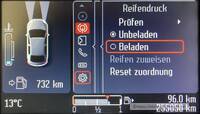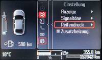 IPC-Menü ⇒ „Einstellungen“ ⇒ „Reifendruck“