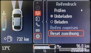 Ab einem Reifendruck von < 1.8 Bar wird während der Fahrt eine Warnung angezeigt. Eine Warnung erfolgt ebenfalls bei einem Druckverlust von 25% bzw. 35% und umfasst ein Aufleuchten der einer Warnmeldung im Kombiinstrument. Im Kombiinstrument erscheinen darüber hinaus Informationen über die Position des betroffenen Rads/der betroffenen Räder: