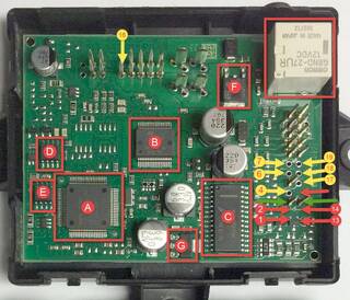 - (A) ⇒ NEC 70F3233M2(A) - Mikrocontroller Chip (NEC wurde von Renesas gekauft. Dort gehört der Chip zur Produktfamilie „V850ES/Fx2“. Diese ist jedoch End-Of-Live) Datenblatt