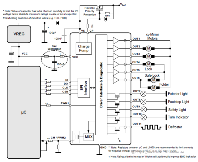 - (C) ⇒ Freescale MC33989DW - System Basis Chip with High Speed CAN Transceiver (Datenblatt)