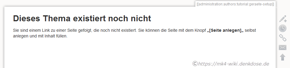 Eigentlich selbsterklärend. Die Seite gibt es noch nicht (klar). Der vom bearbeiten bekannte Button rechts im Fly-Out-Menü der Seite weist nun kein Seiten- sondern ein Stiftsymbol mit einem „+“ auf. Dies signalisiert das die Seite erstellt werden kann.